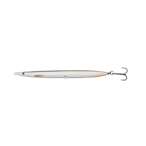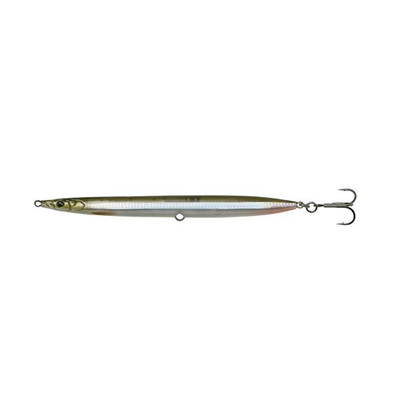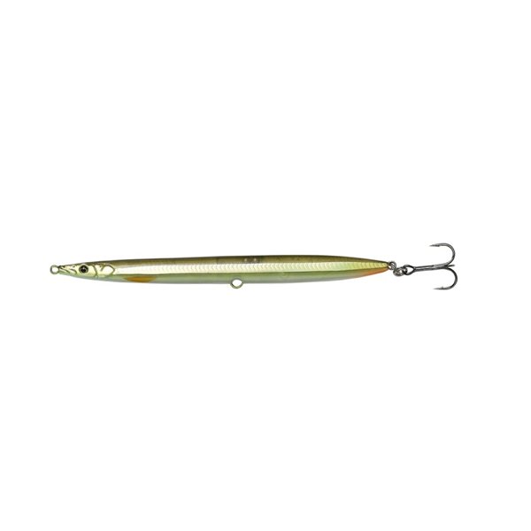 Based on a 3D Scan of a Real Sandeel. Swims with a seducing slim S-curve, head slight up. On the stop, the lure flutters and rolls backwards – triggering hard strikes. The lure has a built-in rattle chamber, that sends out a loud clicking sound, when twitched. Extreme long cast design for amazing coverage. Supplied with both a single and a treble hook, with the option to add the treble hook to the belly as well.