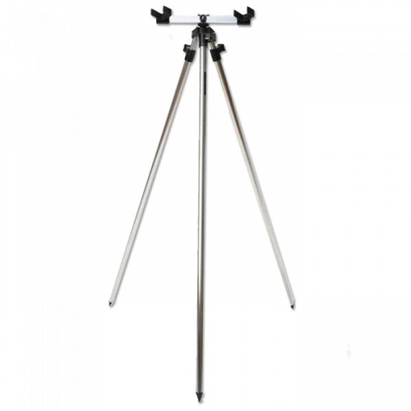 Sturdy adjustable tripod. Ideal for shore, rock or pier fishing .Spiked feet, bucket hook. Supplied with Double Head only. Optional Double Cup available