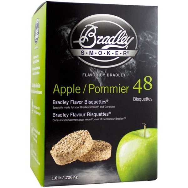 As a member of the fruit tree family, Apple Flavor Bisquettes produce a light, fruity and slightly sweet smoke aroma traditionally used when smoking pork and poultry. Some of the best smoked ribs are also made with Apple Bisquettes!
