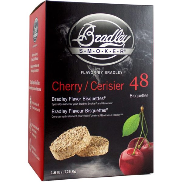 As a member of the fruit tree family, Cherry Bisquettes provide a mild, sweet, and fruity aroma perfect for smoking chicken, and cheese. You can also prepare beautifully colored beef jerky, thanks to the rosy tint Cherry Bisquettes add to your meat when smoking.